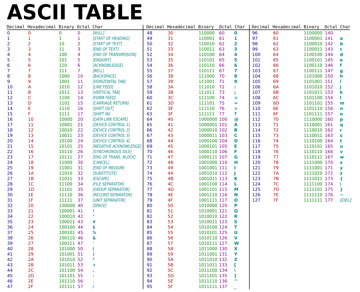 ASCII(7bit) : 128 κ°μ λ¬Έμλ₯Ό νννλ€.
