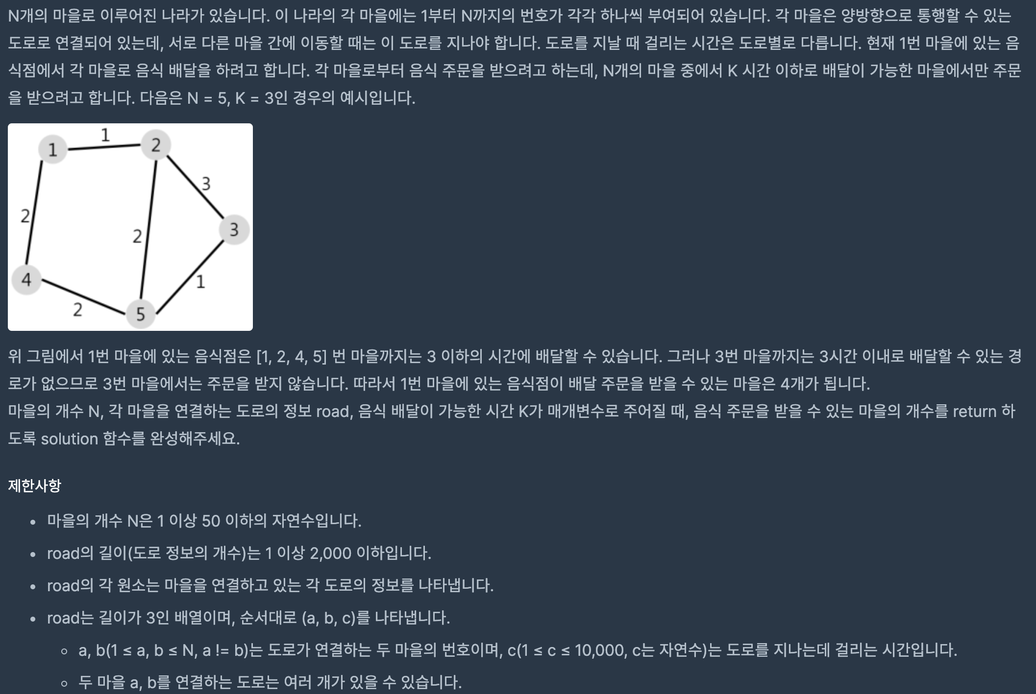 [Programmers] Lv3. ๋ฐฐ๋ฌSW Test/Programmers 2020. 9. 10. 02:43๋ฐ์ํ