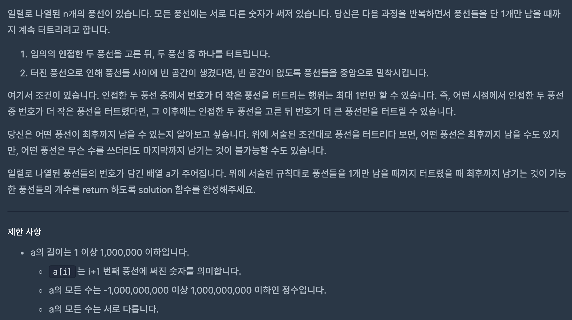 [Programmers] Lv3. ํ์ ํฐ๋จ๋ฆฌ๊ธฐSW Test/Programmers 2020. 9. 20. 23:07๋ฐ์ํ