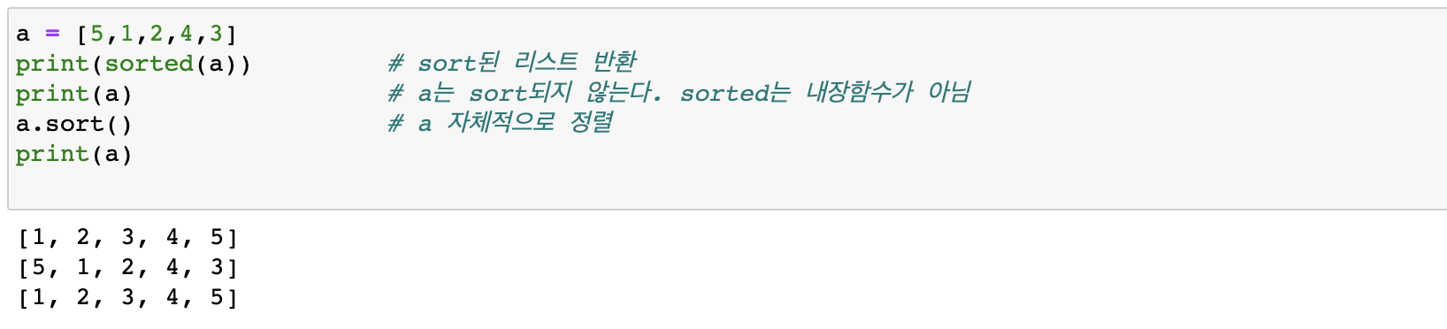 sort ( ) : List์ ๋ด์ฅํจ์๋ก List ์์ฒด๊ฐ ์ ๋ ฌ