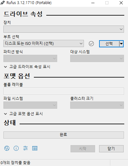Rufus ๊ณต์ ์ฌ์ดํธ[https://rufus.ie/] ์ ๊ฐ์ Portable์ฉ์ผ๋ก ๋ค์ด๋ก๋ ๋ฐ์ต๋๋ค.