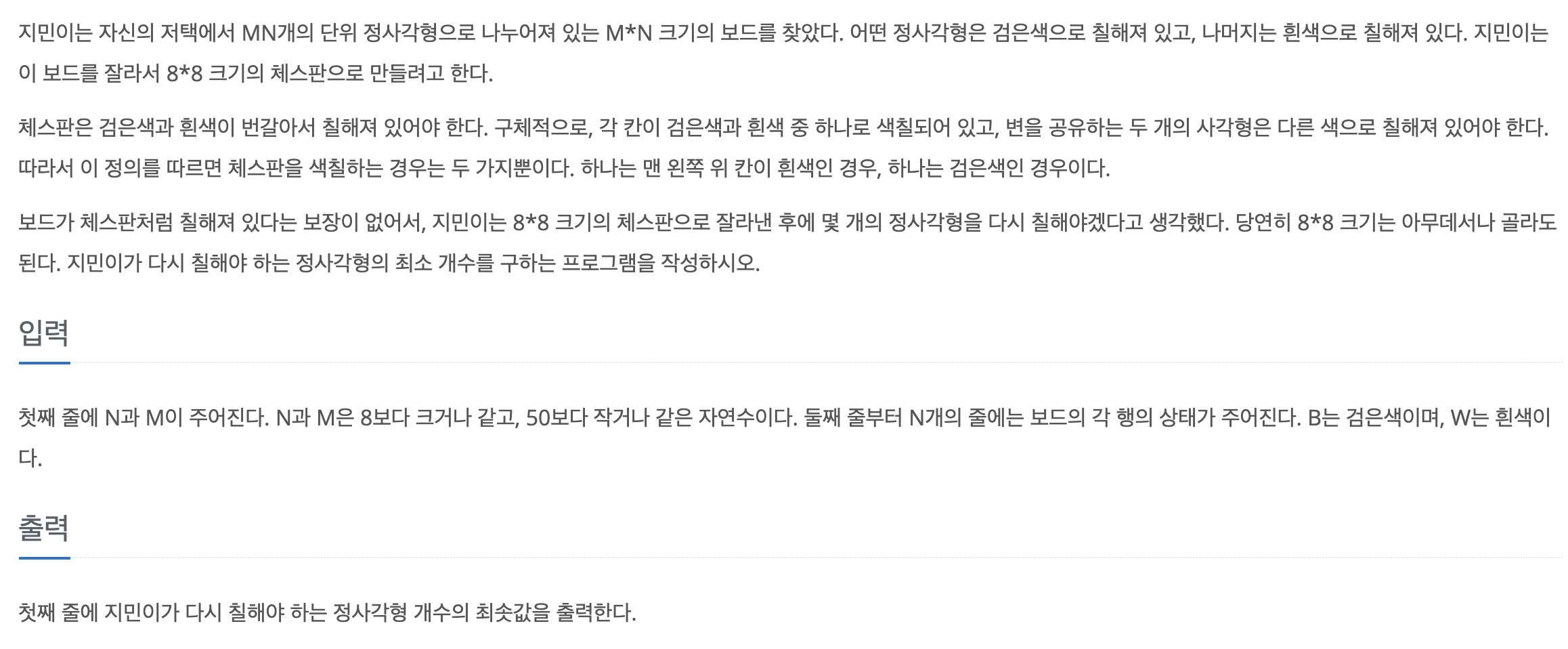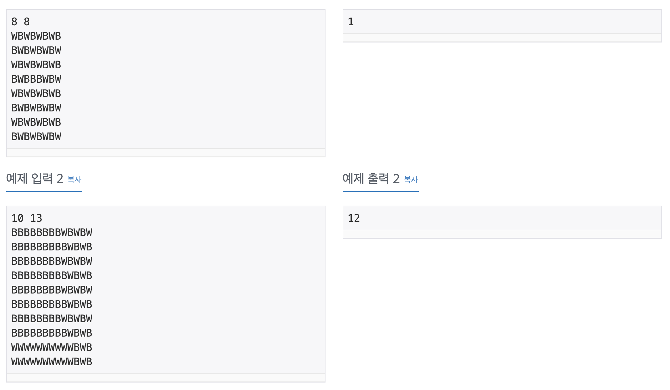 "WBWBWBWB","BWBWBWBW","WBWBWBWB","BWBWBWBW"};