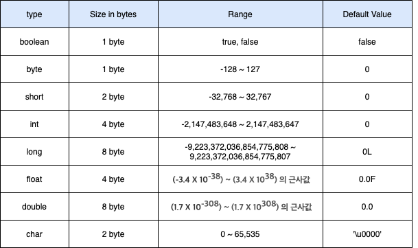 - λ¨, μμκ° μ μ₯λ μ μλ byte, short λ±μ νμ μ΄ charμΌλ‘ μλ νμ λ³νν μ μμ΅λλ€. (μ»΄νμΌ μλ¬)