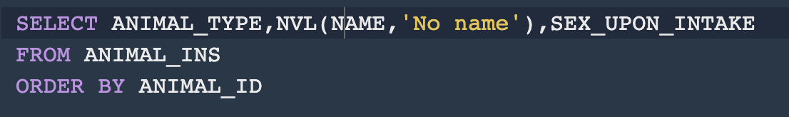 [Programmers] Lv2. 이름에 el이 들어가는 동물 찾기(SQL) (0) 2020.02.08 [Programmers] Lv2. 루시와 엘라 찾기(SQL) (0) 2020.02.08 [Programmers] Lv2. 중복 제거하기(SQL) (0) 2020.02.08 [Programmers] Lv1. 소수 찾기 (1) 2020.02.01 [Programmers] Lv1. 체육복 (0) 2020.01.20 - Programmers의 문제로 저는 Oracle로 풀이를 작성하였습니다.문제예시)