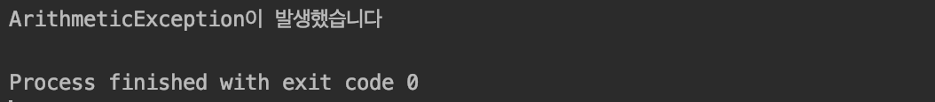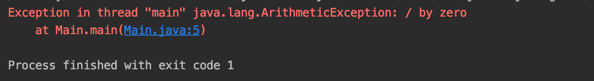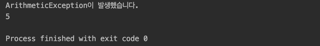 μ΄μ μ κ²°κ³Όμ λμΌνκ² ArithmeticExceptionμ΄ λ°μν©λλ€. νμ§λ§ μ½λ© μμμ ArithmeticExceptionμ λ°μνκ² νλ μ½λλ μμ΅λλ€.
