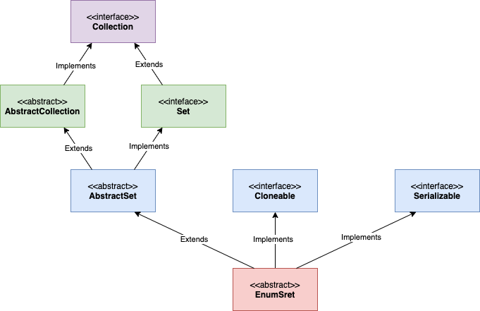 AbstractSetμ AbstractCollectionμ λλΆλΆ Setκ³Ό Collection μΈν°νμ΄μ€μ λ©μλλ₯Ό μ 곡νμ§λ§, EnumSetμ λλΆλΆ μ€λ²λΌμ΄λ©νμ¬ μ¬μ©ν©λλ€.