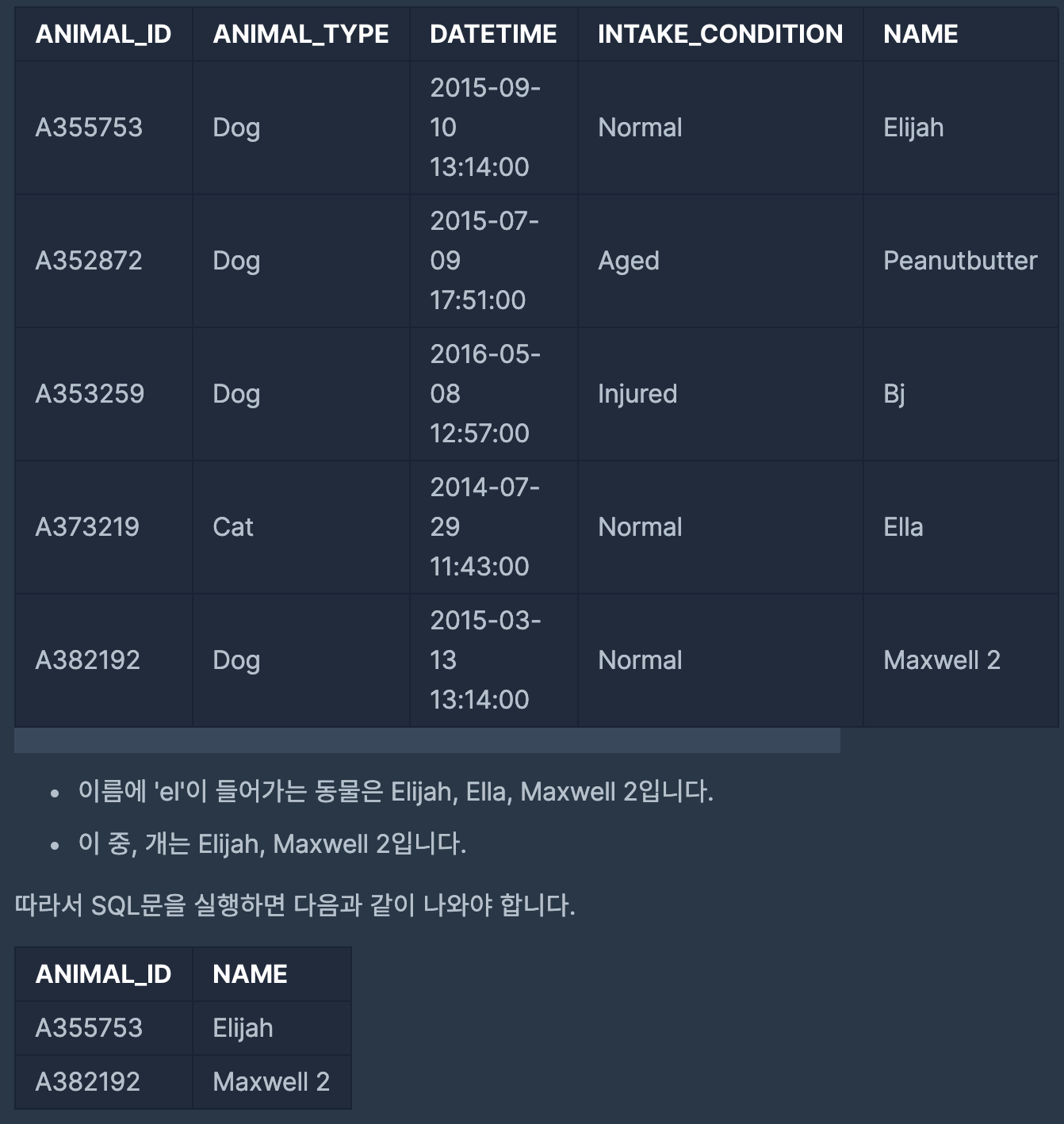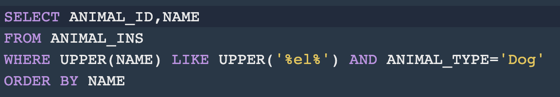 LIKE : ์ปฌ๋ผ์ ์ฐพ๊ธฐ ์ํด ์ฐ๋ Query๋ฌธ ex) LIKE %el% el์ด ๋ค์ด๊ฐ๋ ๊ฒ ์ฐพ๊ธฐ