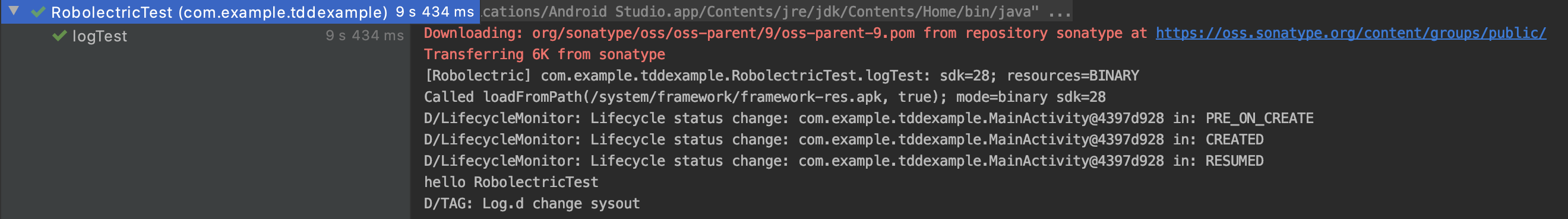 @RunWith(RobolectricTestRunner.class) public class RobolectricTest { // Android.util.Log๋ฅผ System.out ์ถ๋ ฅ @Before public void setUp() throws Exception { ShadowLog.stream = System.out; } @Test public void logTest(){ System.out.println("hello RobolectricTest"); Log.d("TAG","Log.d change sysout"); } }
