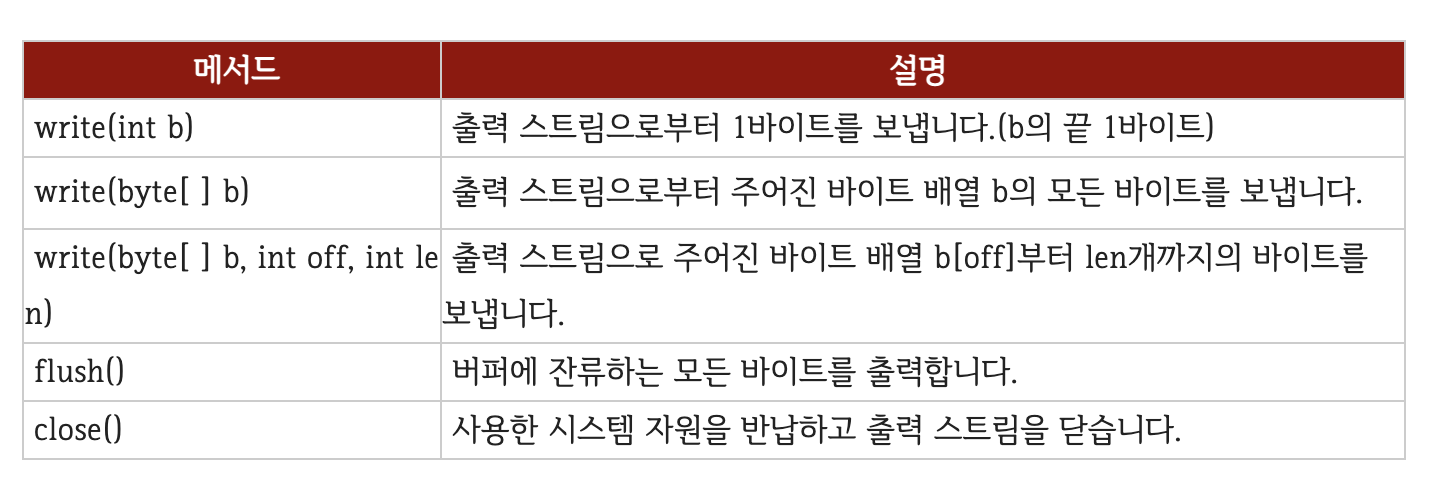 https://velog.io/@ljs0429777/Java-IO OutputStream๋ ๋ง์ฐฌ๊ฐ์ง๋ก ๋ฐ์ดํธ ๊ธฐ๋ฐ ์ถ๋ ฅ ์คํธ๋ฆผ์ ์ต์์ ํด๋์ค๋ก abstract class์ ๋๋ค. ๋ชจ๋ ๋ฐ์ดํธ ๊ธฐ๋ฐ ์ถ๋ ฅ ์คํธ๋ฆผ๋ ์ด ํด๋์ค๋ฅผ ์์๋ฐ์์ ๋ฉ์๋๋ฅผ ์ฌ์ ์ํ์ฌ ์ฌ์ฉํฉ๋๋ค.