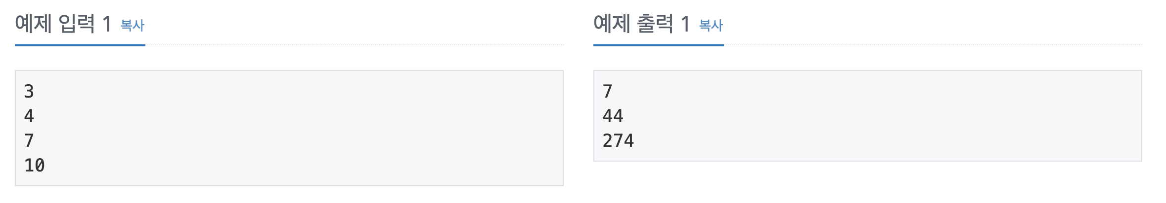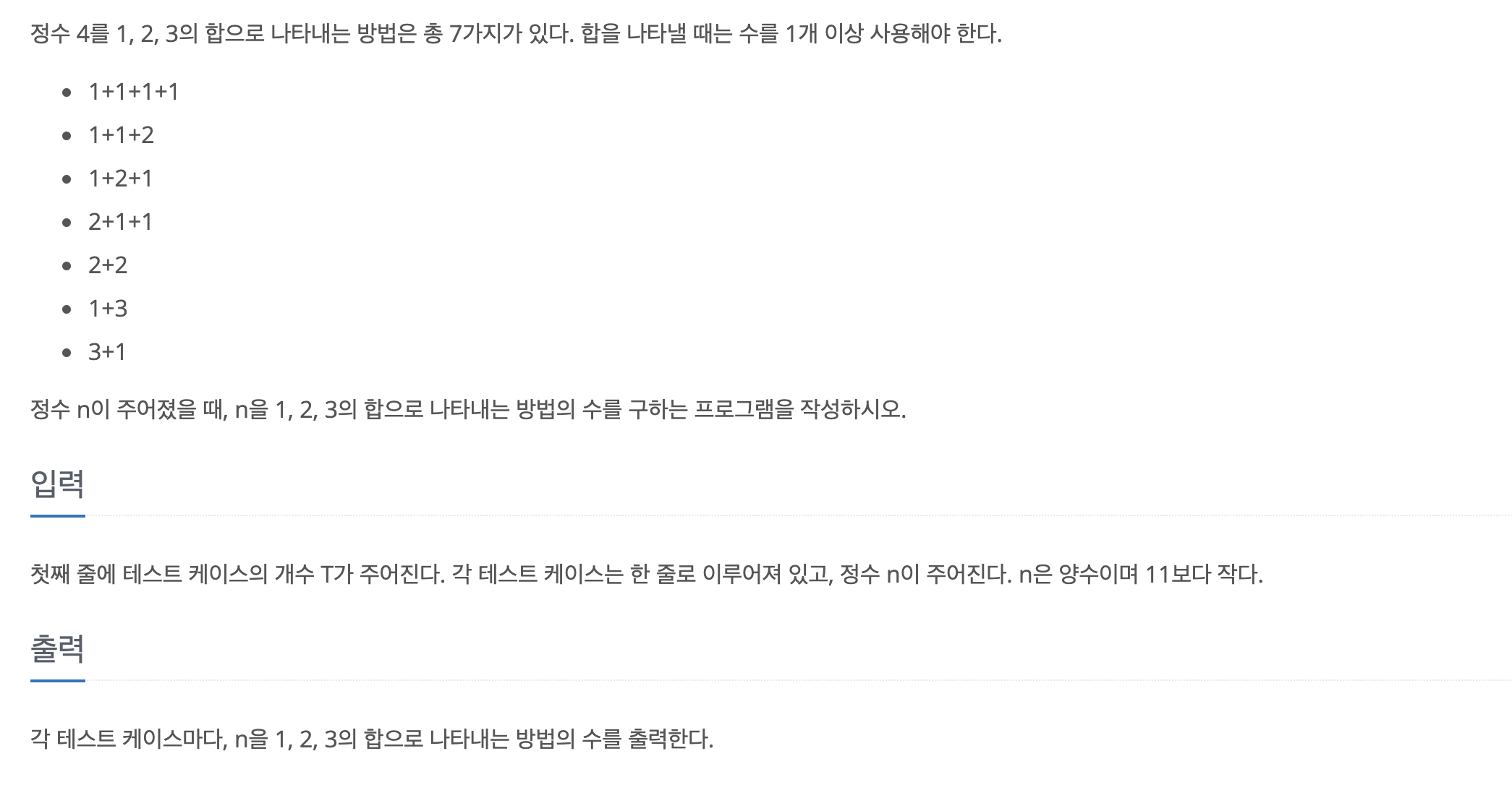 - ๋ฌธ์ ํด๊ฒฐ์ ์ํ ์ ํ์์ D[i] = D[i-1] + D[i-2] +D[i-3] ์