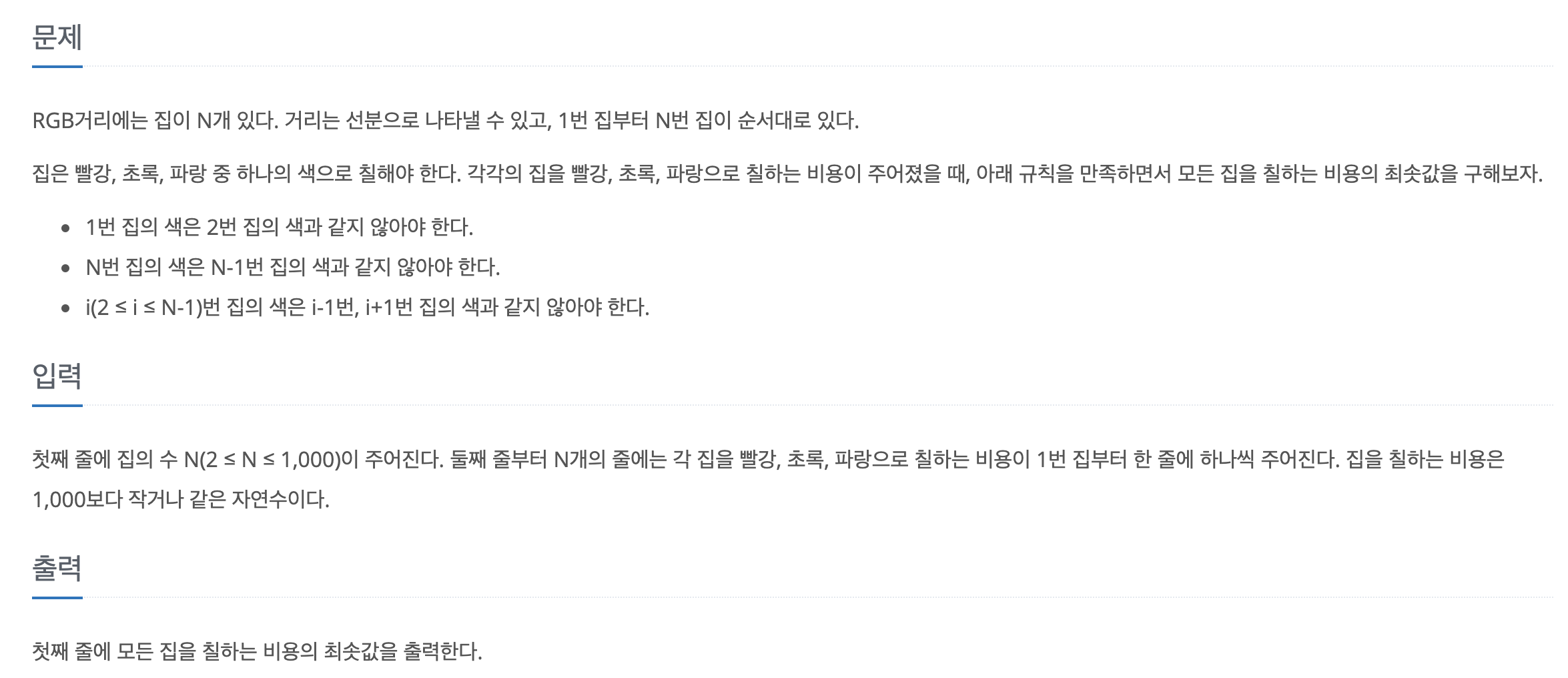 - iν jμ΄μ jμμμ μΉ νλ€κ³ κ°μ νμ λ, i λ²μ§Έ μ§κΉμ§ μ§μ μΉ νλ μ΅λ λΉμ©μ κ³μ°ν©λλ€.