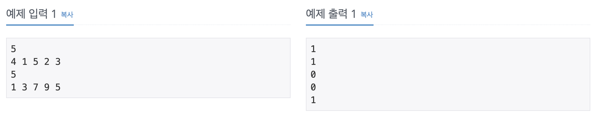 cout<<binary_search(arr, arr+num,n)<<"\n";