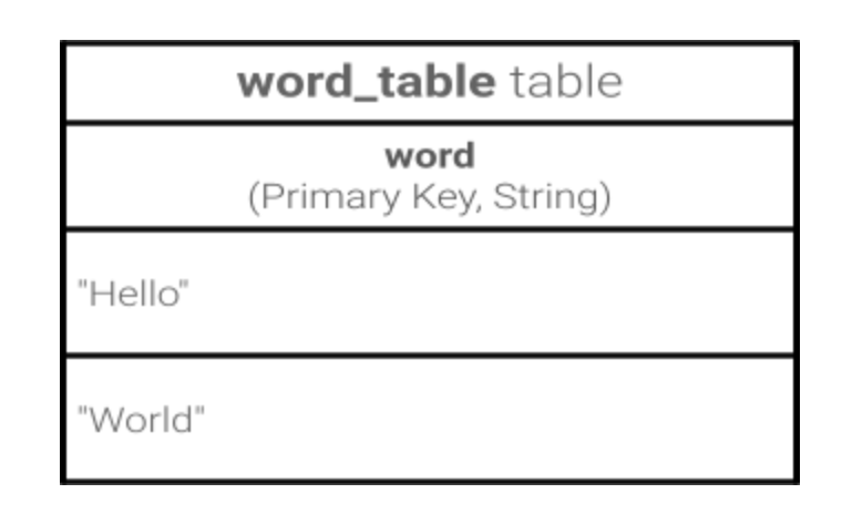 Entity(table) ์์ ๊ฐ์ด word_table ์ด๋ผ๋ ์ด๋ฆ์ ๊ฐ์ง ํ ์ด๋ธ์ ์์ฑํฉ๋๋ค. ํ ์ด๋ธ ๋ด์ ์ปฌ๋ผ์ ๋ฌธ์์ด์ ๋ํ๋ด๋ word ํ๋๋ก ํ ์ด๋ธ ๋ด์ ๊ธฐ๋ณธํค์ ํด๋น๋ฉ๋๋ค. Room ์์๋ ํ ์ด๋ธ์ ๊ฐ๋ฆฌํค๋ Entity ํด๋์ค๋ฅผ ์ ์ํ์ฌ ํ ์ด๋ธ์ ๋ํ๋ผ ์ ์๊ณ ํด๋์ค ๋ด ํ๋กํผํฐ๋ก ํ ์ด๋ธ์ ์ปฌ๋ผ์ ์์ฑํฉ๋๋ค. ๊ถ๊ทน์ ์ผ๋ก ํ ์ด๋ธ์ ํ์์ ๊ฐ์ฒด๋ฅผ ์ธ์คํด์คํ ํ๊ฒ๋ฉ๋๋ค.