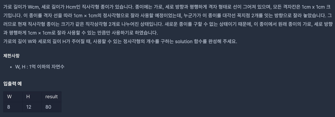 https://school.programmers.co.kr/learn/courses/30/lessons/62048?language=kotlin ํ์ด