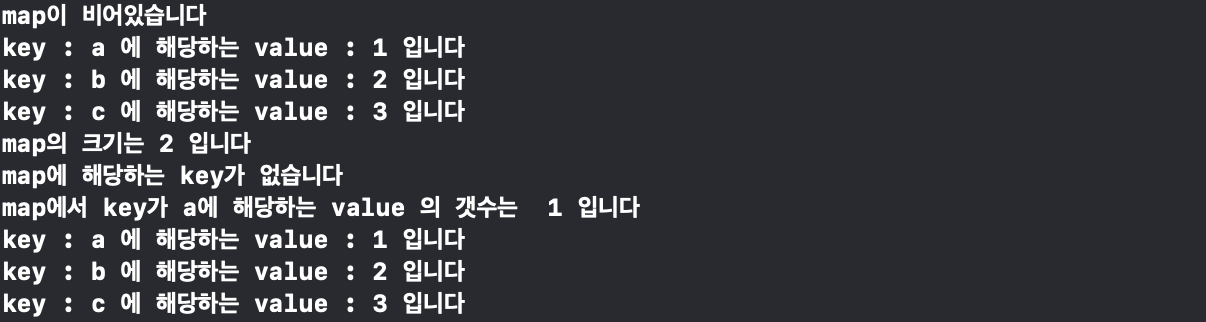 - ๋งต์์ key์ ํด๋นํ๋ ์์์ ๊ฐฏ์๋ฅผ ๋ฐํํ๋ ํจ์