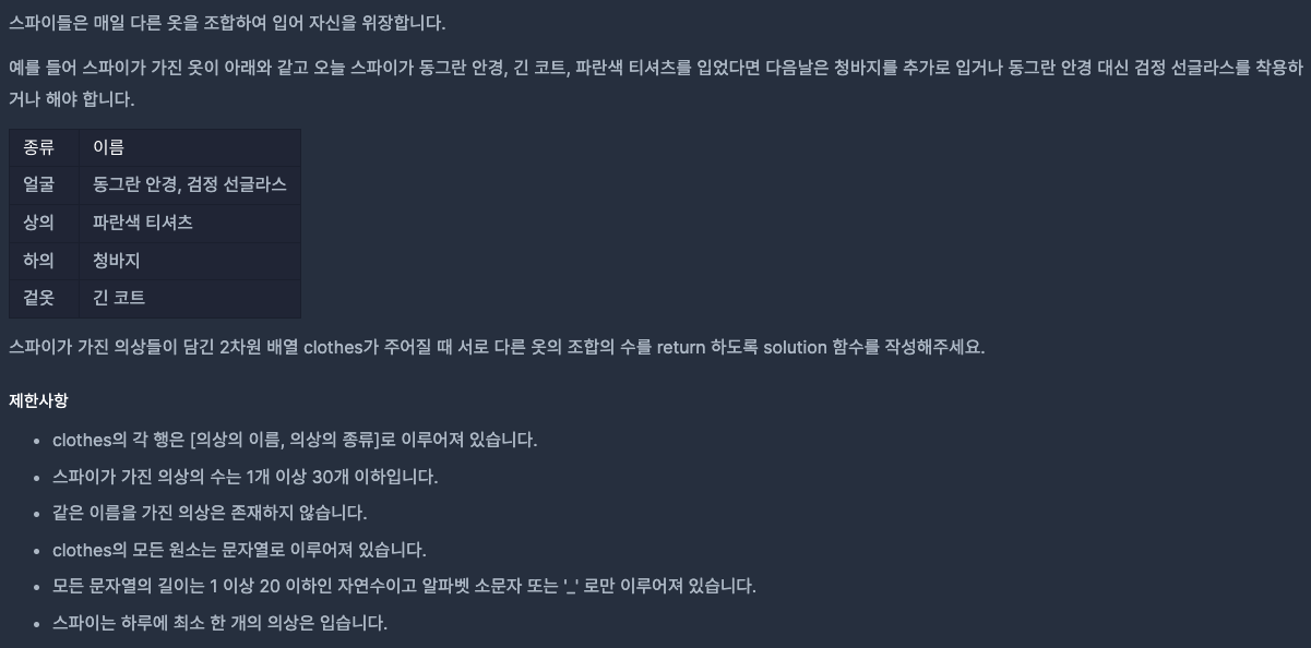 https://school.programmers.co.kr/learn/courses/30/lessons/42578 ์์