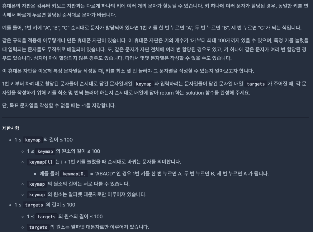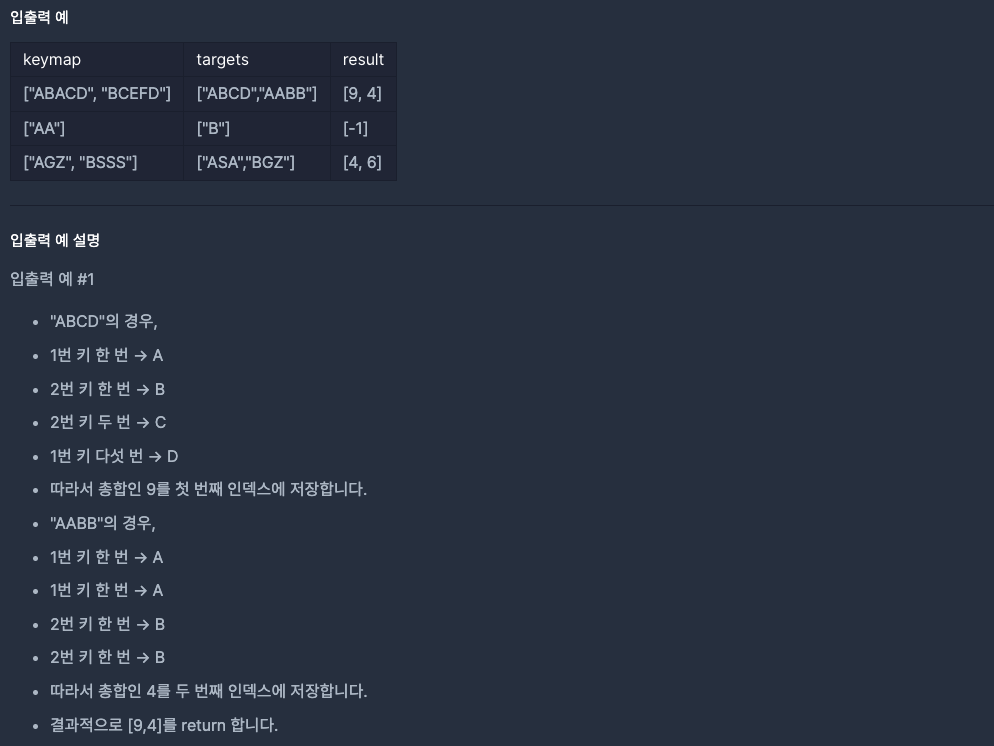 - λ¬Έμμ΄μ λ¬Έμ νλμ© keymapμμ μ‘°ννμ¬ κ°μ₯ indexκ° μμ κ²μ νν΄μΌ ν©λλ€.