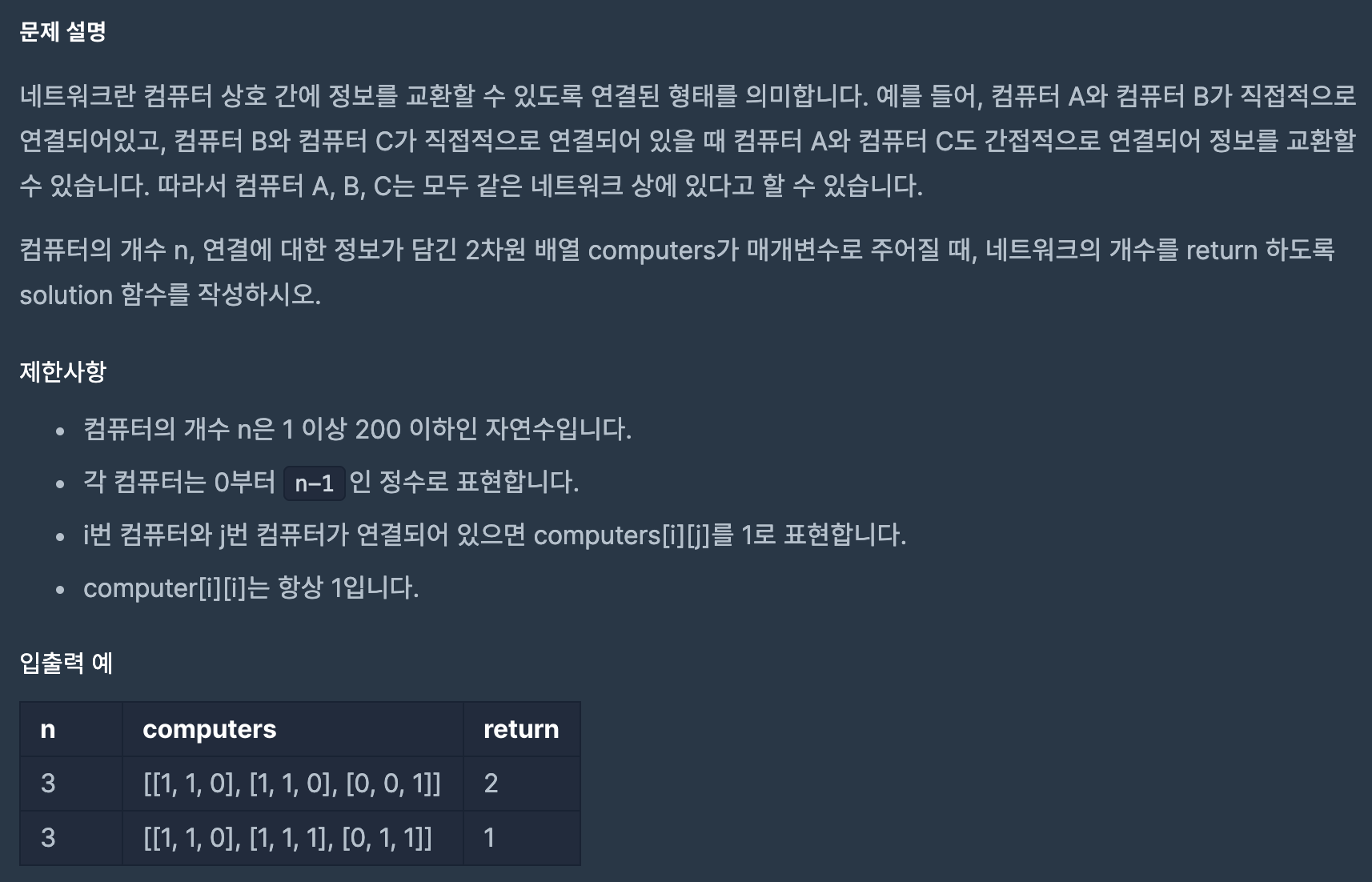 [Programmers] Lv3. ๋คํธ์ํฌSW Test/Programmers 2020. 3. 29. 16:06๋ฐ์ํ