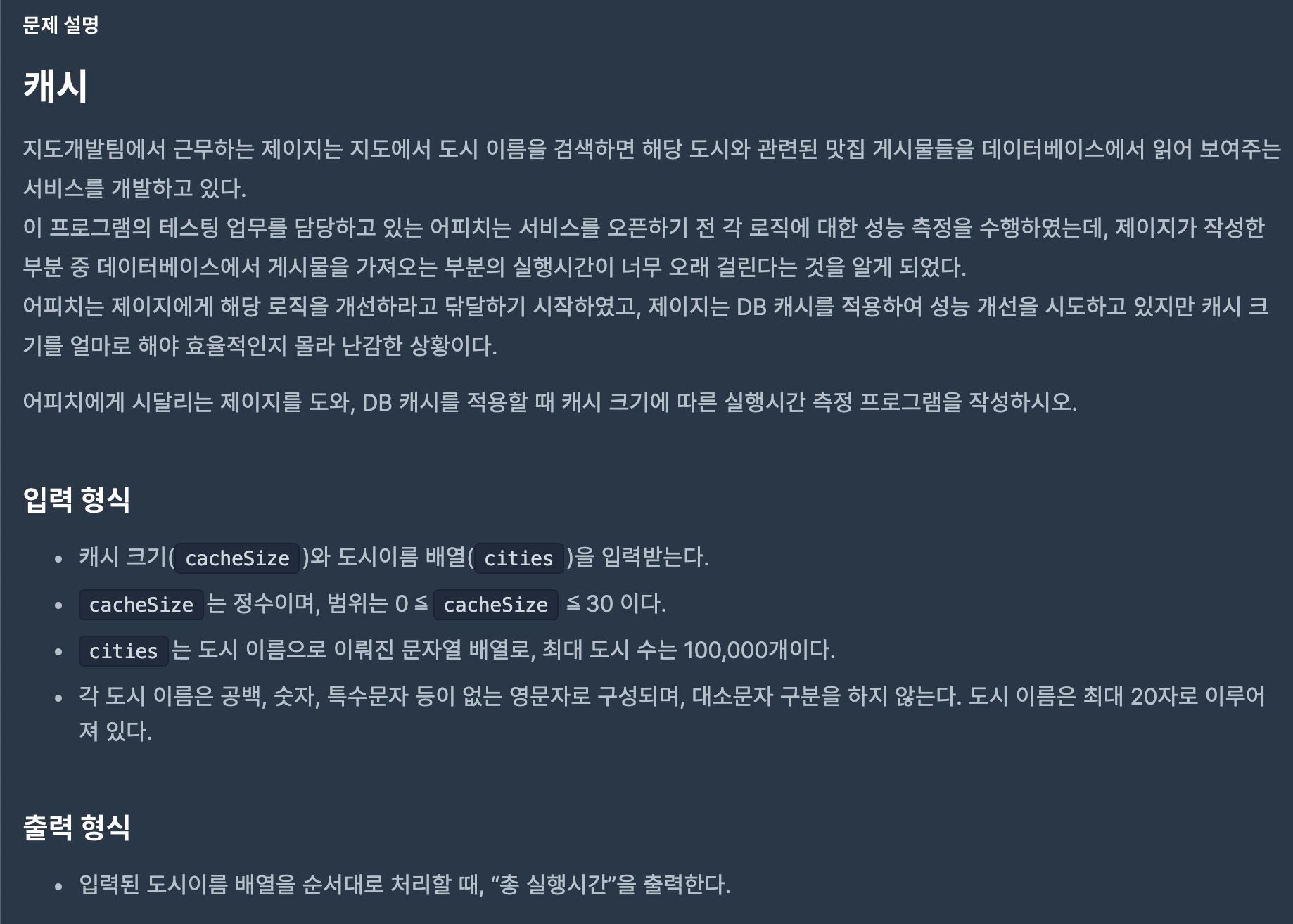 [Programmers] Lv2. [1์ฐจ] ์บ์SW Test/Programmers 2020. 4. 13. 22:54๋ฐ์ํ
