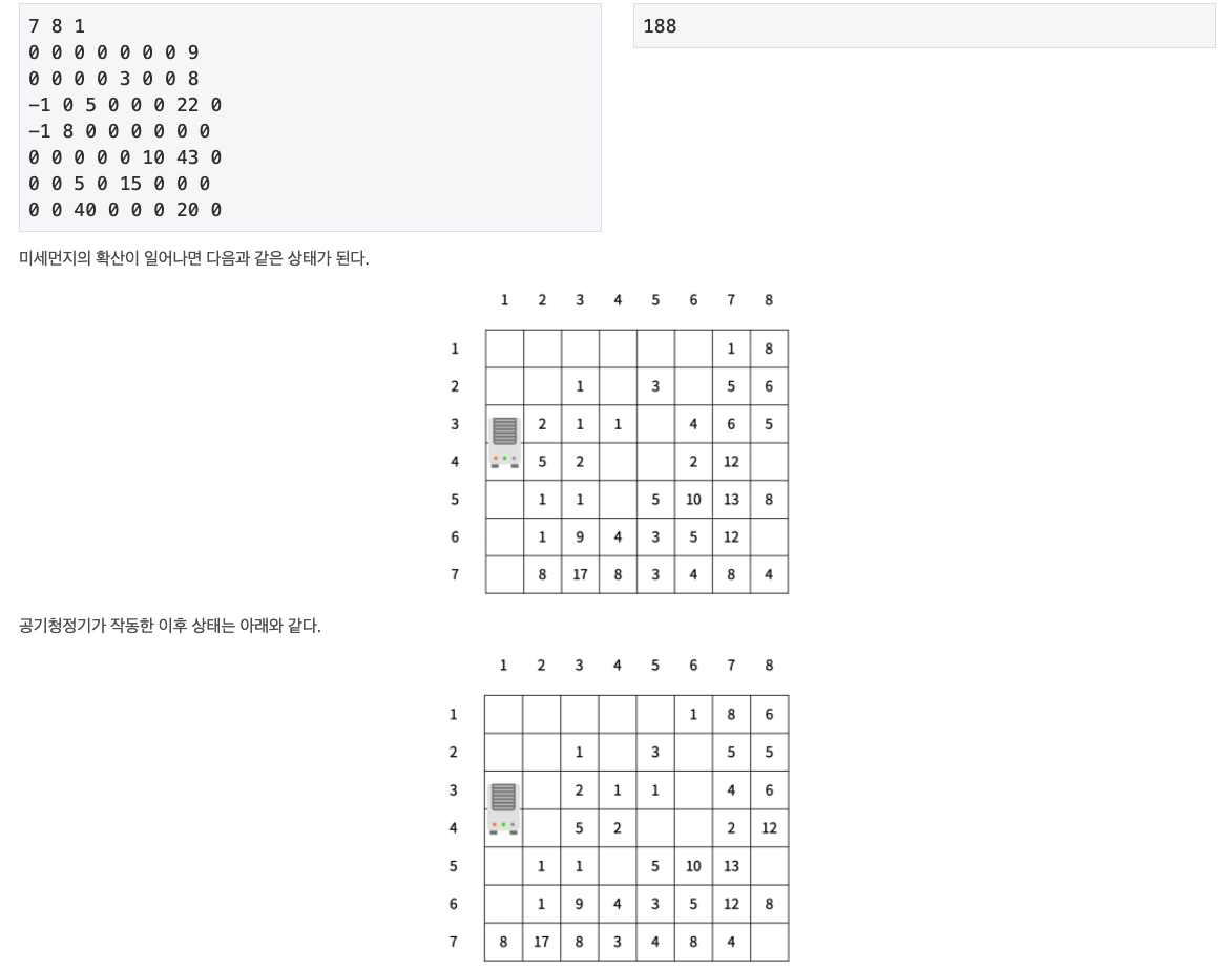 temp[dy][dx]+=num; // ํ์ฐ ๋ฏธ์ธ๋จผ์ง ์ ์ถ๊ฐ