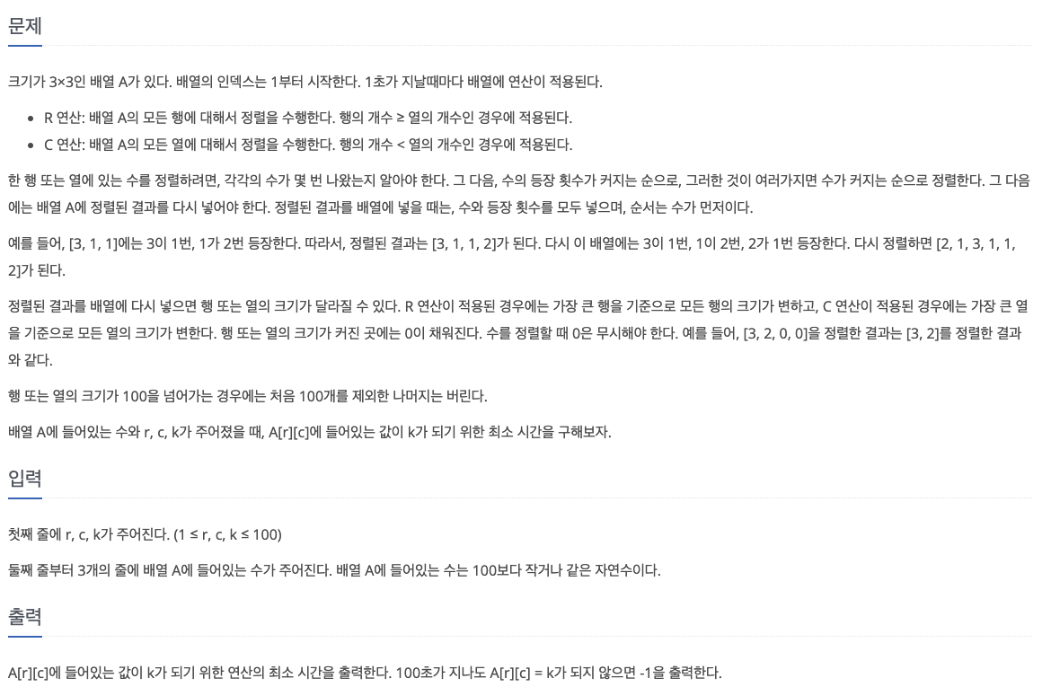 // answer์ด 100์ด์์ด๊ฑฐ๋ vec[r][c]==k๊ฐ ๋๋ฉด ์ข