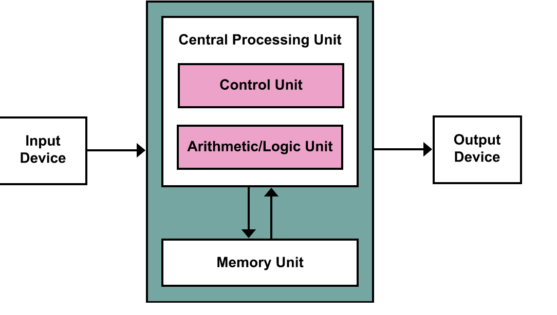 - ์ฐ์ฐ์ด ์ด๋ค์ง๋ ์ฅ์น๋ฅผ ๋๊ฒ ์ด์ผ๊ธฐํ๋ฉด CPU๊ฐ ๋ด๋น