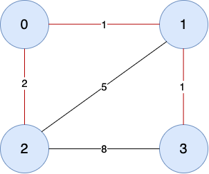 ํด๋น ๊ทธ๋ํ๊ฐ union-find ์๊ณ ๋ฆฌ์ฆ์ ์ฌ์ฉํ๋ฉด ๋ชจ๋ ๊ฐ์ ๋ถ๋ชจ ๋ ธ๋๋ฅผ ๊ฐ๋ฆฌํค๊ธฐ ๋๋ฌธ์ ๊ทธ ๋ค ๊ฐ์ ๋ค์ ๋ฌด์ํ๋ฉด ๋ฉ๋๋ค.