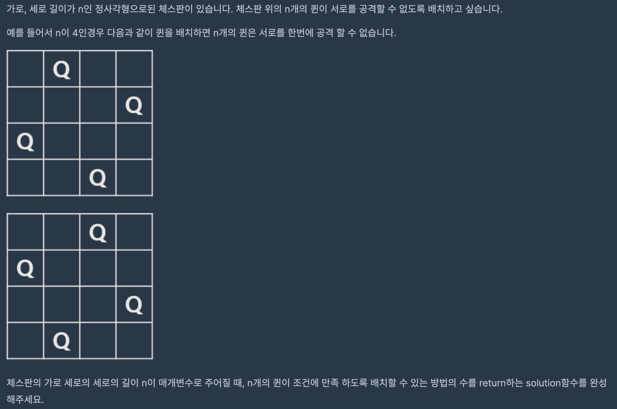 [Programmers] Lv3. N-QueenSW Test/Programmers 2020. 9. 7. 03:41๋ฐ์ํ